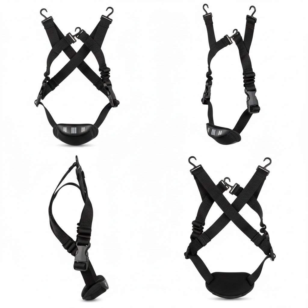 - Materiales: Generalmente están hechos de cinta elástica o de reata de poliéster, y las hebillas y ganchos suelen ser de plástico de alta resistencia.