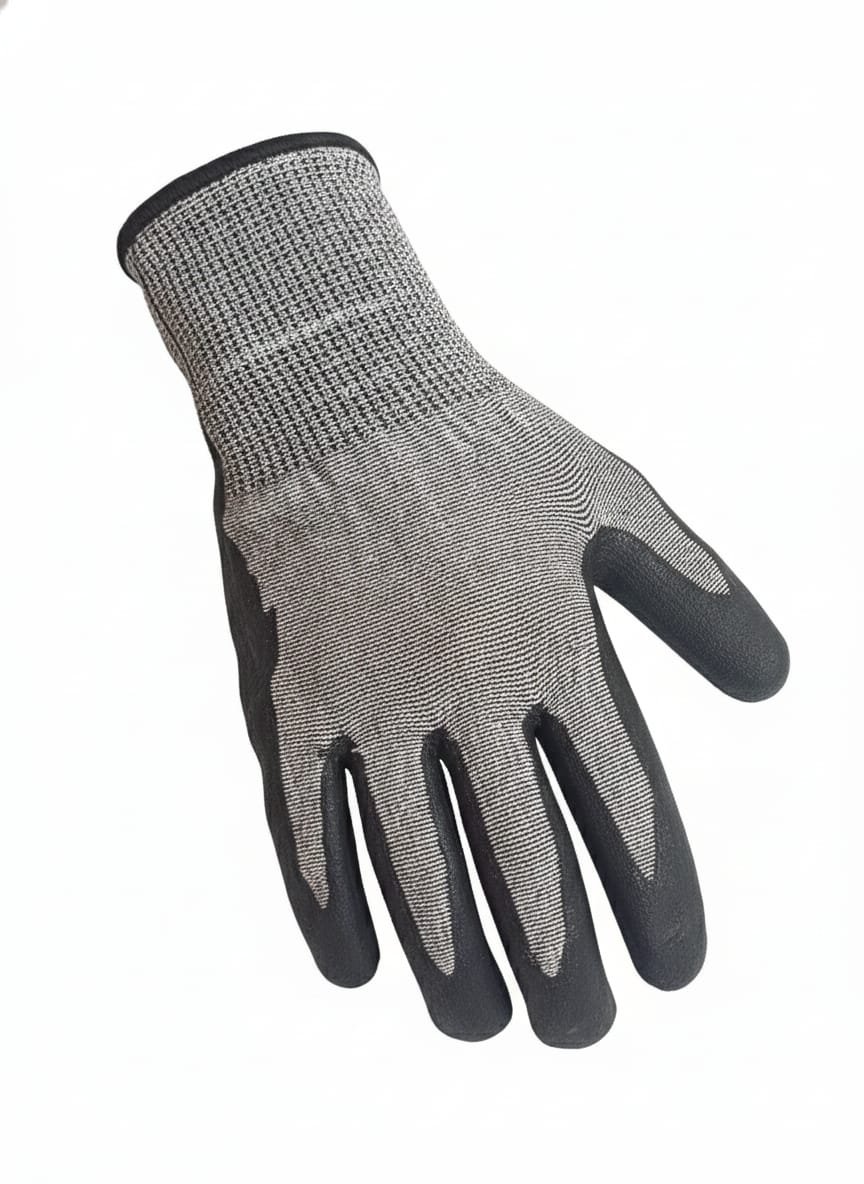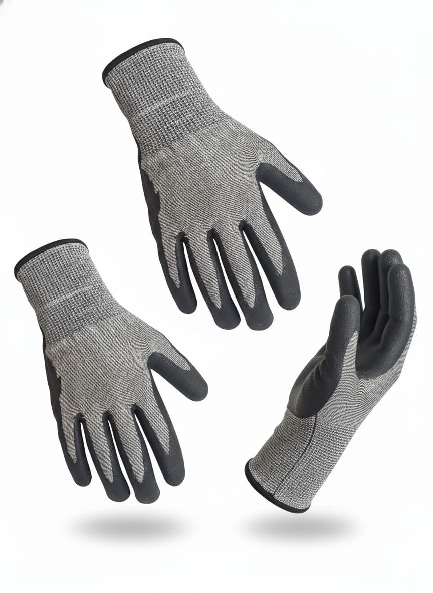 El modelo mostrado presenta un recubrimiento en la palma y los dedos (generalmente de poliuretano o nitrilo), lo que mejora el agarre y la precisión en trabajos manuales. Además, su diseño ergonómico se ajusta perfectamente a la mano, permitiendo una gran destreza y sensibilidad táctil.