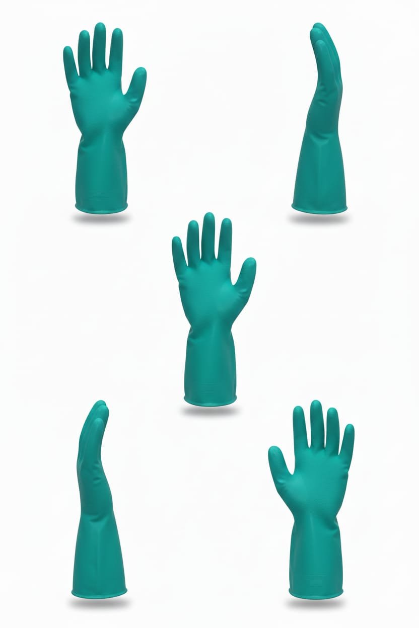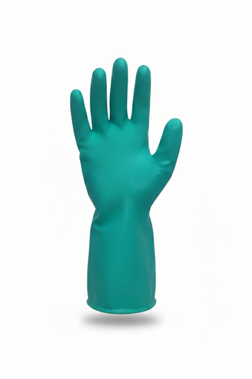 El color verde suele ser del material con el que están fabricados: muchos guantes químicos largos usan nitrilo verde, un tipo de caucho sintético resistente.