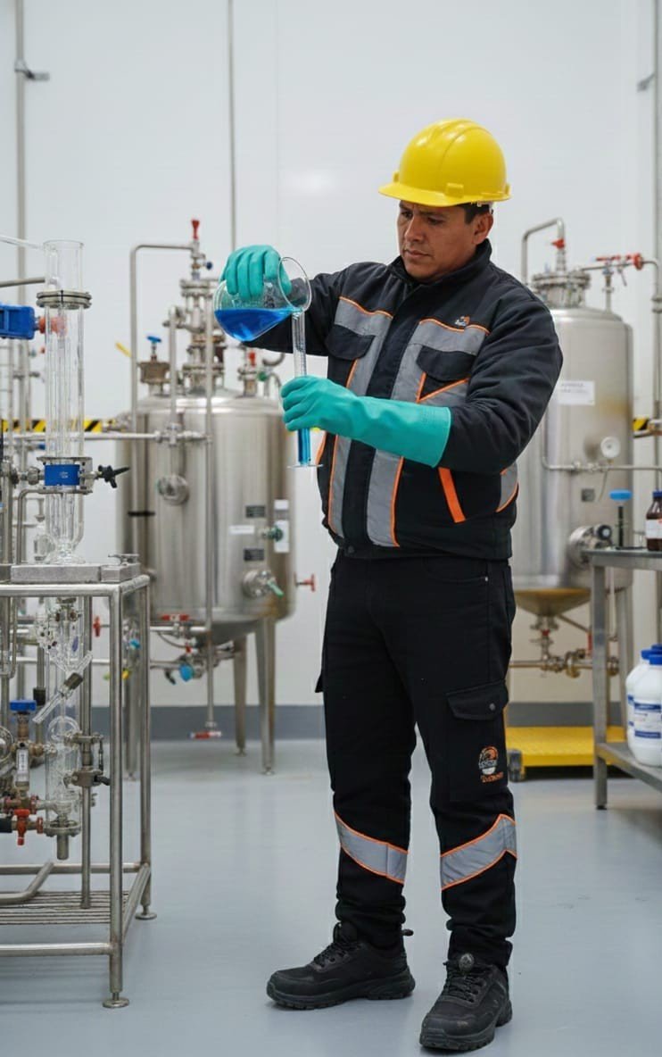 Es un guante de trabajo diseñado específicamente para proteger frente a sustancias químicas peligrosas (acidos, disolventes, aceites, etc.).