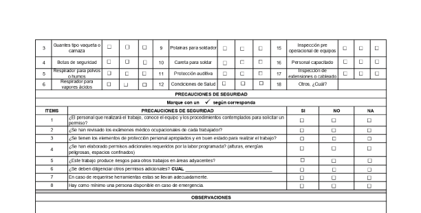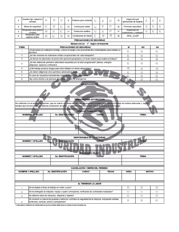 PERMISO DE TRABAJO EN CALIENTE (EXCEL, PDF)